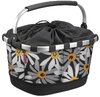 RT Carrybag GT margarite Der beliebte Einkaufskorb von Reisenthel kommt mit Klickfix ans Fahrrad. Dank dem gepolsterten Tragebügel lässt sich der quer ausgerichtete Korb komfortabel tragen und besticht durch satte 24 l Stauraum für Einkäufe, die sicher mit dem Kordelzug verschlossen werden können. Der solide Thermoform Boden und Versteifungen bringen Stabilität, ein Reißverschlussfach im Inneren bietet genug Platz für Schlüssel und Wertsachen. Die Versteifungselemente lassen sich heraus nehmen, so dass der Korb flach und platzsparend verstaut werden kann.